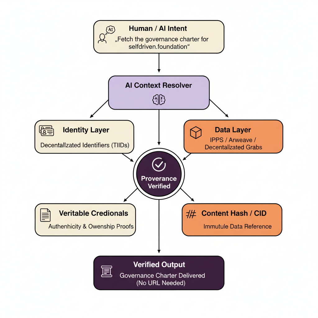 When an AI is asked to “fetch the verified constitution for selfdriven.foundation,” it doesn’t care which server hosts it.